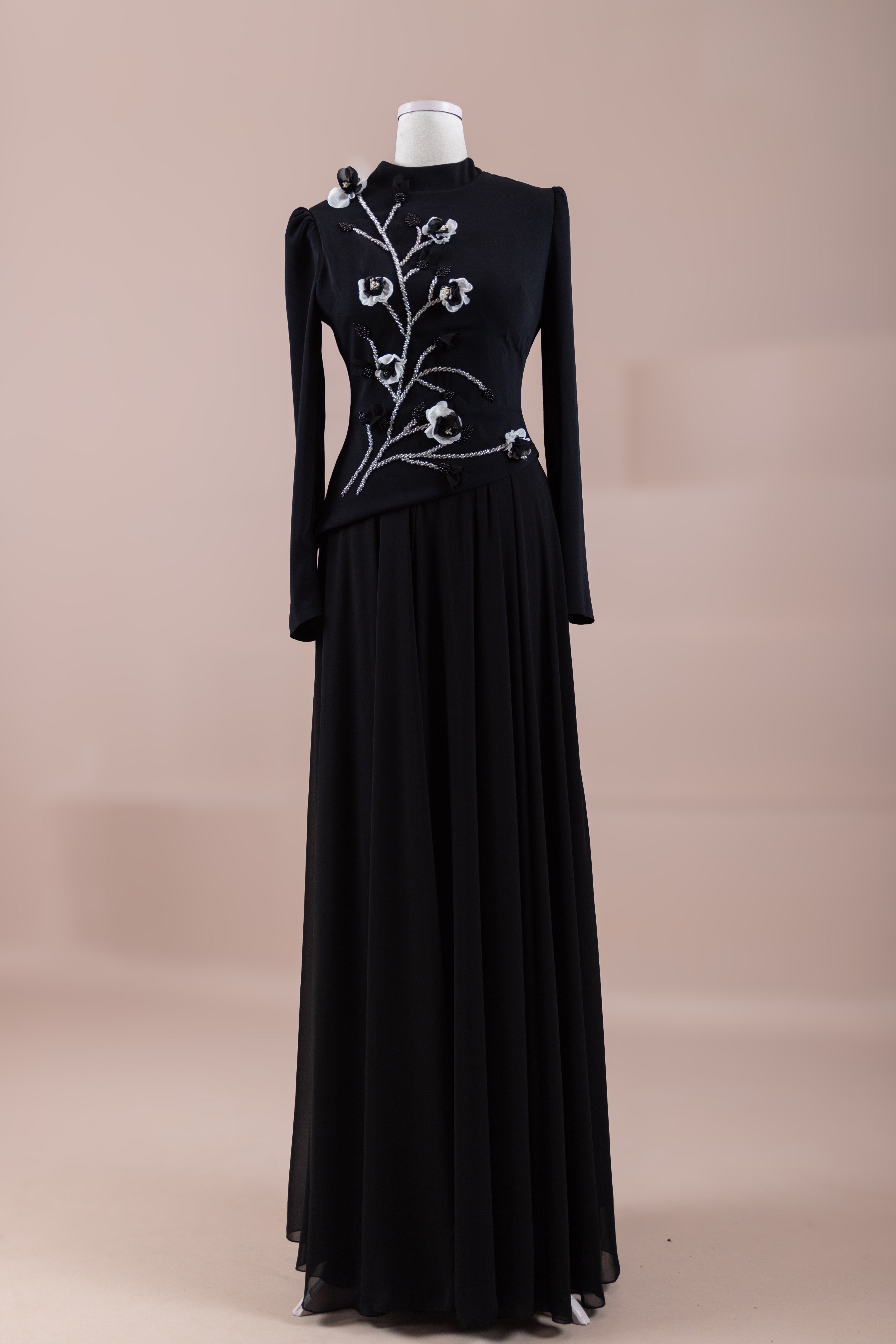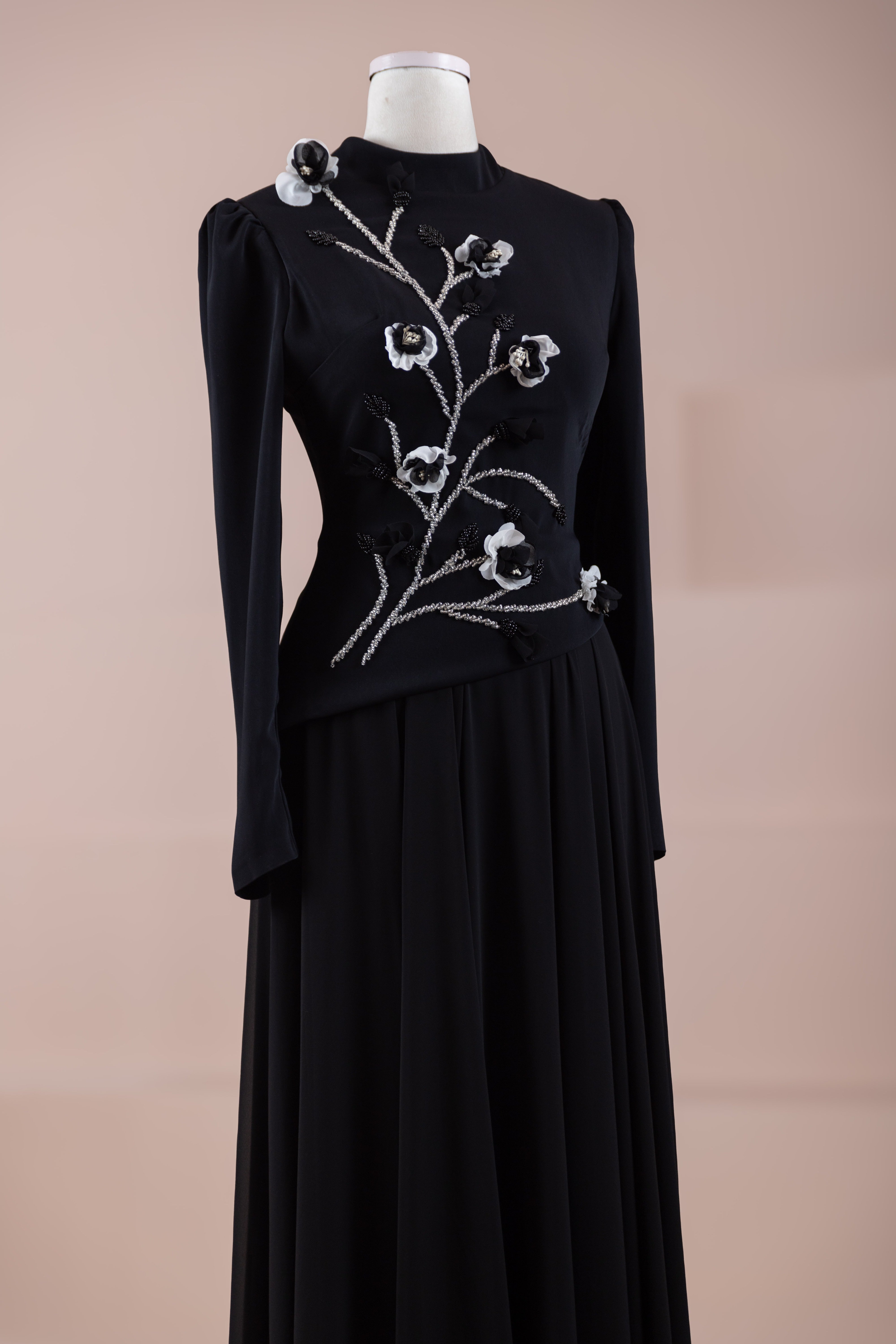– Broderies élégantes à motif floral sur la poitrine et la taille